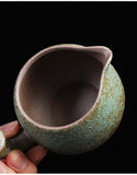 This is a coarse pottery tea fairness cup. The cup is made of rustic pottery, showcasing a rough texture and a natural, earthy appearance. Its unique design and handmade craftsmanship give it a distinctive charm. The tea fairness cup is an essential accessory in traditional tea ceremonies, used to ensure an even distribution of tea to all participants. The coarse pottery material not only adds an aesthetic appeal but also enhances the flavor of the tea, providing an authentic and traditional tea-drinking experience.